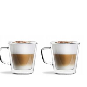 Szklanki są wykonane z wysokiej jakości szkła borokrzemowego. Jest to idealne rozwiązanie do codziennego użytku, ponieważ jest bardzo odporne na wysoką temperaturę i zapobiegają poparzeniu podczas trzymania.