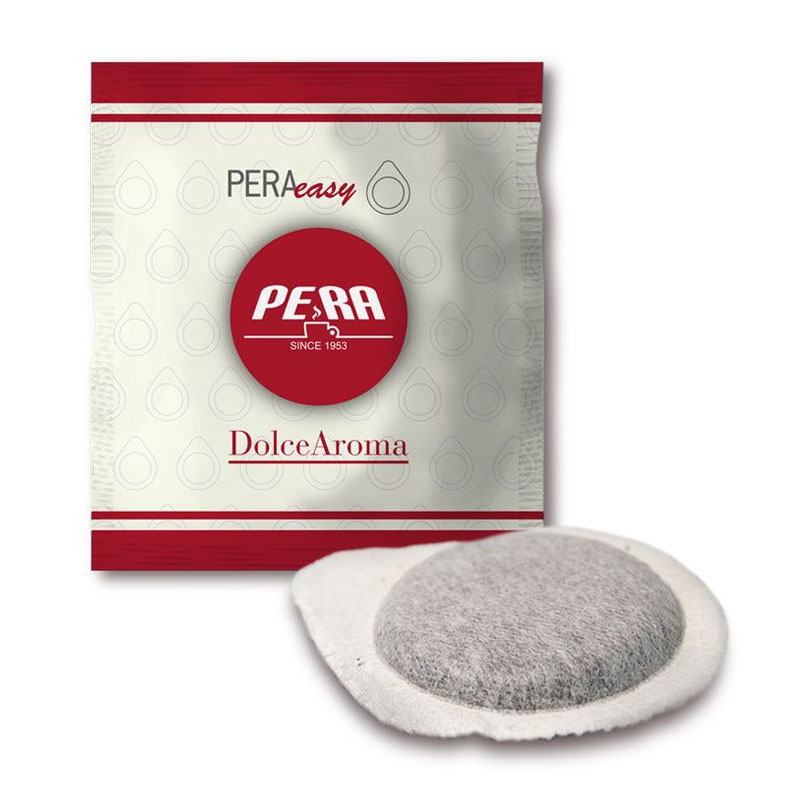 Podsy PERAeasy DolceAroma zawierają doskonałą mieszankę 7 g kolumbijskiej Arabiki (20%) i wietnamskiej Robusty (80%) Pera DolceArom wyróżnia się intensywnym smakiem kawy bez cienia goryczy i kwaśnego posmaku. Idealnie wyważony blend z obfitą cremą i wyraźnie wyczuwalną słodyczą – Dolce! Podsy pasują do ekspresów obsługujących standard ESE (Easy Serving Espresso). Średnica saszetki wynosi 44 mm.