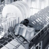 Elementy przystawki mające kontakt z mlekiem i syropem – pojemnik oraz pokrywka – można myć w zmywarce, co zapewnia wysoki poziom higieny i wygodę użytkowania.