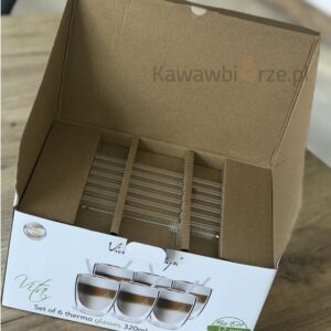 Zestaw sześciu termicznych szklanek marki Vialli Design wraz z 6 szklanymi słomkami. Szklanki termiczne VITA o pojemności 320 ml wykonane z wysokiej jakości szkła boro-krzemowego, wolnego od metali ciężkich i BPA. Szklanki z podwójną ścianką doskonale utrzymują temperaturę podanych napojów. 100% zdrowego ekologicznego stylu! Bez metalicznego posmaku, nie reagują z żadnymi płynami, oraz są hipoalergiczne !!! Szklane słomki jako doskonałe rozwiązanie za plastikowe i prezentują się pięknie podane jako deser, mrożona kawa, kolorowe drinki. Dołączona szczoteczka pozwoli na dokładne mycie słomek, do tego szkło można myć w zmywarkach. Pojemność: 320ml Wysokość szklanki: 11cm Długość słomki: 15cm Pięknie zapakowany zestaw w kartonik to doskonały pomysł na prezent !