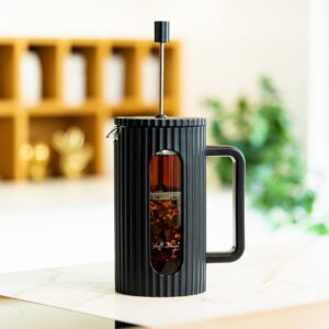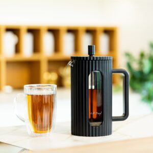 Poznaj Livio – zaparzacz do kawy i herbaty od Vialli Design, który przekształca codzienne parzenie napojów w chwilę wyjątkowej przyjemności. Z pojemnością 1000 ml, Livio idealnie sprawdza się podczas codziennych chwil relaksu lub spotkań z bliskimi. Dzięki nowoczesnemu wykończeniu łączy styl z praktycznością, a wygodne ucho zapewnia komfort podczas użytkowania. To detale, które nie tylko zachwycają wyglądem, ale także sprawiają, że codzienne zaparzanie ulubionych napojów staje się przyjemniejsze. Zaprojektowany z myślą o trwałości i komforcie, Livio został wykonany z najwyższej jakości szkła borokrzemowego. Odporność na wysokie temperatury sprawia, że bez obaw możesz w nim przygotować gorące napoje. Solidna konstrukcja sprawia, że zaparzacz będzie służył Ci przez lata, zapewniając zawsze idealny napój, bez względu na to, czy jesteś miłośnikiem kawy, herbaty, czy ziół. Tłokowy mechanizm ze stali nierdzewnej i sitko sprawiają, że oddzielenie fusów od naparu jest szybkie i proste. Wystarczy nasypać do komory ulubioną mieszankę, zalać wrzątkiem i odczekać aż napój osiągnie odpowiedni stopień zaparzenia. Kiedy tłok zostanie naciśnięty, sitko oddzieli fusy/susz od reszty, dając możliwość cieszenia się klarownym napojem. Odpowiednio zaprojektowana wylewka ułatwia nalewanie, a proces parzenia staje się płynny i intuicyjny. Niezależnie od tego, czy serwujesz poranną kawę, popołudniową herbatę, czy wieczorny napar z ziół, Livio od Vialli Design zapewni, że Twój napój zawsze będzie smakować wybornie, a elegancka prezentacja zachwyci każdego gościa.