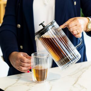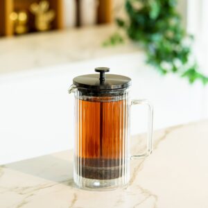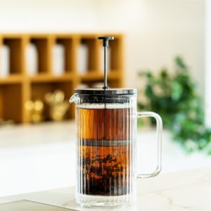 strong>Tulip – zaparzacz do kawy i herbaty, który zaspokoi wszystkie Twoje potrzeby związane z parzeniem napojów. To nie tylko funkcjonalne urządzenie, ale również element, który doda elegancji każdemu spotkaniu przy filiżance ulubionego naparu. Pojemność 1000 ml pozwala cieszyć się większą ilością napoju za jednym parzeniem – idealne rozwiązanie, gdy chcesz zrelaksować się w samotności lub podzielić się wyjątkowym smakiem z bliskimi, bez konieczności ciągłego dolewania. To więcej czasu na to, co najważniejsze – na delektowanie się chwilą i dzielenie nią z bliskimi. Dzięki tłokowemu zaparzaczowi wykonanemu ze stali nierdzewnej proces przygotowywania jest prosty i efektywny – oddzielenie fusów od naparu staje się dziecinnie łatwe, a odpowiednio zaprojektowana wylewka gwarantuje wygodne oraz bezpiecznie nalewanie. Wystarczy nasypać do komory ulubioną mieszankę, zalać wrzątkiem i odczekać aż napój osiągnie odpowiedni stopień zaparzenia. Kiedy tłok zostanie naciśnięty, sitko oddzieli fusy/susz od reszty, dając możliwość nalewania klarownego napoju. Przedmiot wykonany z najwyższej jakości szkła borokrzemowego nie tylko pięknie się prezentuje, ale także jest wyjątkowo trwały i odporny na nagłe zmiany temperatury. Ścianki z podwójnego szkła utrzymują optymalną temperaturę napoju na dłużej, podczas gdy duże, wygodne ucho zapewnia komfort podczas użytkowania. Zaparzacz posiada pokrywkę, dostępną w trzech ekskluzywnych kolorach – złotym, srebrnym lub grafitowym. Przeźroczysta komora zaparzacza pozwala na obserwowanie procesu parzenia, co nie tylko ułatwia kontrolę nad przygotowaniem napoju, ale także dodaje estetycznego wrażenia. Tulip to nie tylko zaparzacz – to Twój klucz do świata smaków. Przygotujesz w nim zarówno aromatyczną kawę, jak i herbatę, a także ziołowe napary. Nowoczesny design sprawi, że każdy napój zyska na elegancji, zachwycając Twoich gości. Z zaparzaczem Tulip codzienne rytuały nabierają nowego wymiaru. Niezależnie od tego, czy jesteś miłośnikiem kawy, herbaty czy ziołowych naparów – wybierz zaparzacz od Vialli Design, by cieszyć się smakiem, komfortem i nowoczesnym stylem w każdym łyku.